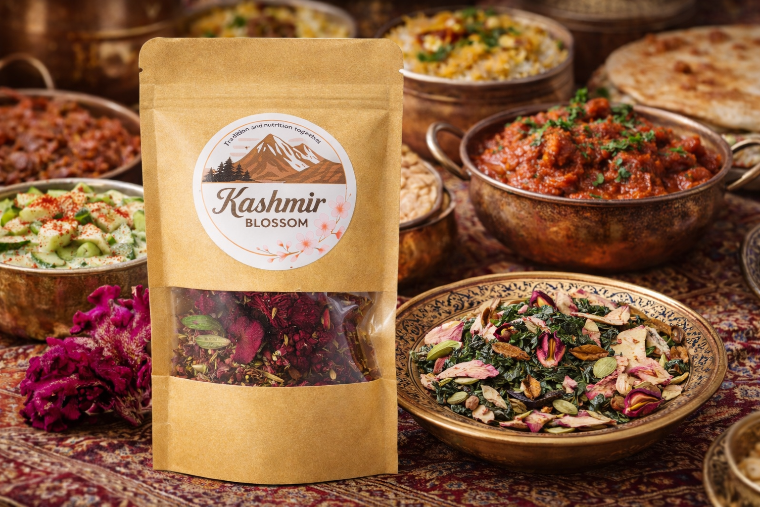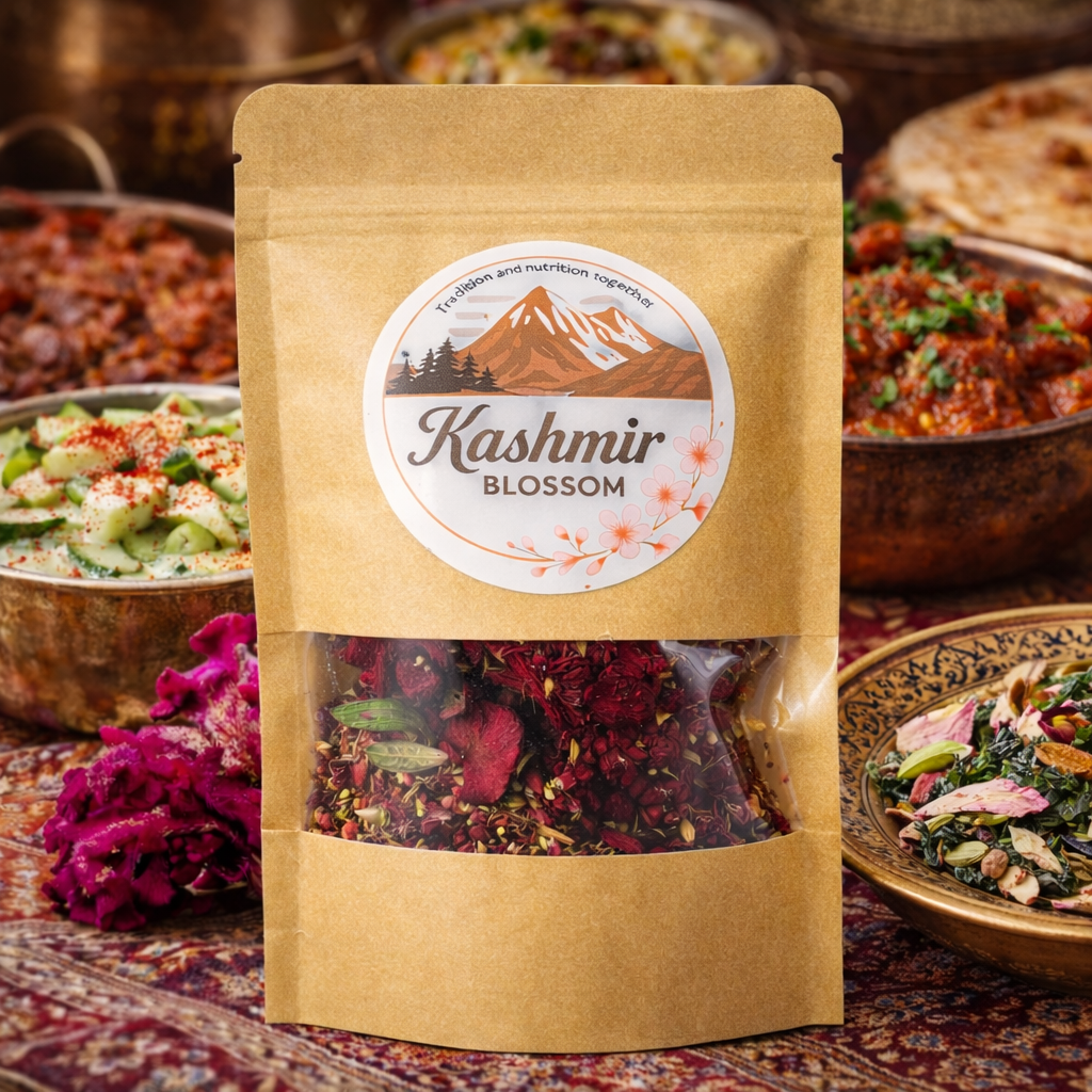 Colour, texture, and flavour shaped gently by Kashmir’s wildflowers.